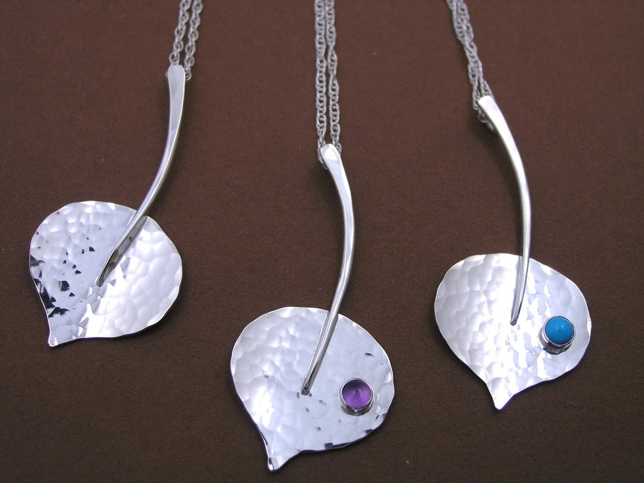 Large Aspen Leaf Pendant forged in silver. 1"x1"