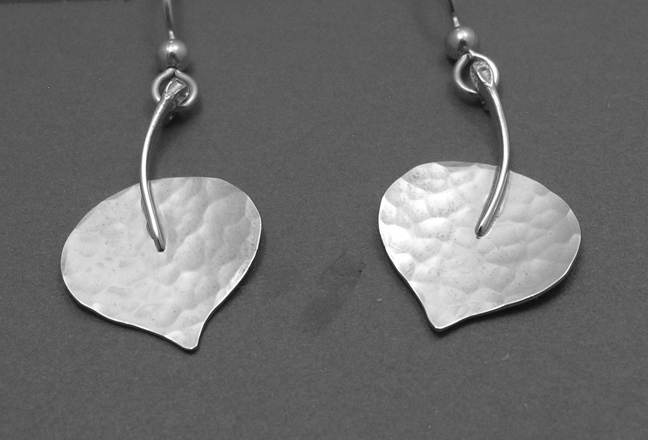 Forged Aspen Leaf Earrings With Stems. In silver, 5/8" across.